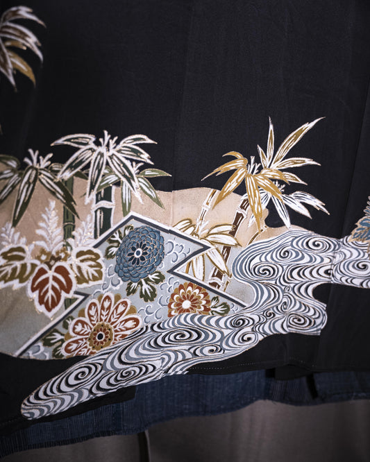 KUROTOMESODE Kimono - Bamboo and Chrysanthemum Motif